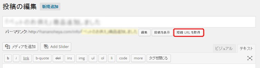 実際のところは、WordPress 4.4 から、タイトル下の[短縮URLを取得]ボタンと、[投稿を表示]ボタンがなくなってしまったのですが、そうと知らなければびっくりしますよね。